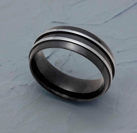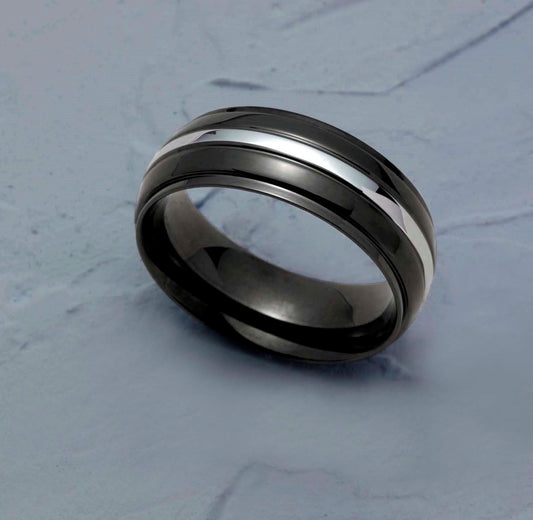 8MM Black Ion Plated Stainless Steel Dome Wedding Ba...