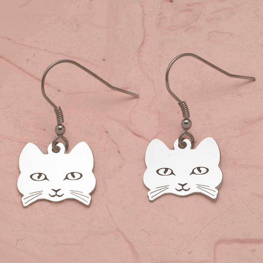 Adorable Cat Face Dangle Earrings Stainless Steel Je...