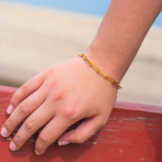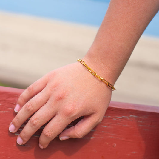 14K Gold Plated Paper Clip Link Chain Bracelet for W...