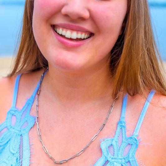 24" Stainless Steel Large Paperclip Chain Link Neckl...