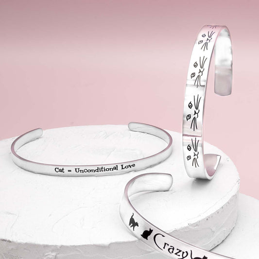 Cat Unconditional Love Engraved Stainless Steel Cuff...
