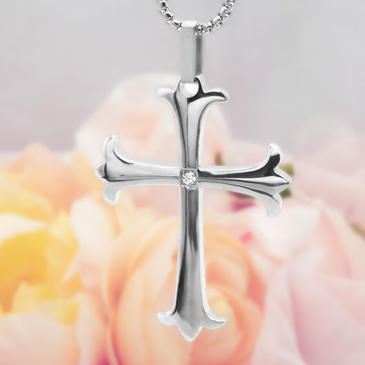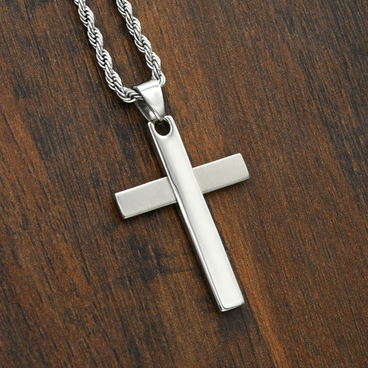 Cross Pendant Necklace with Brushed and Polished Sta...