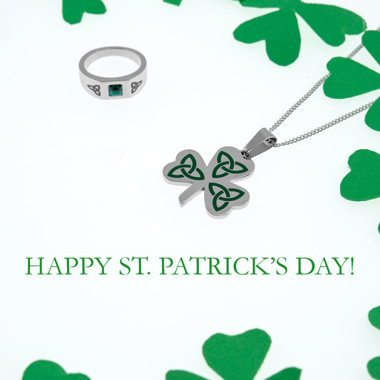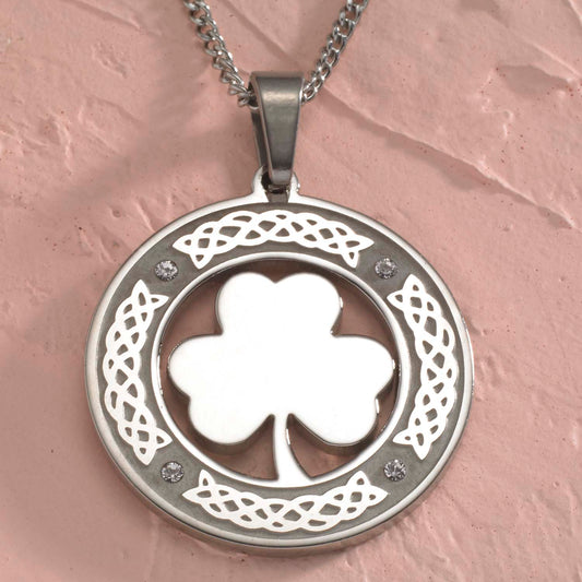 Celtic Trinity Knot Shamrock Pendant Necklace with B...