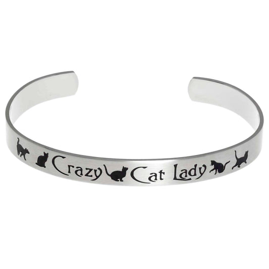 Crazy Cat Lady Engraved Steel Cuff Bracelet - Quirky...