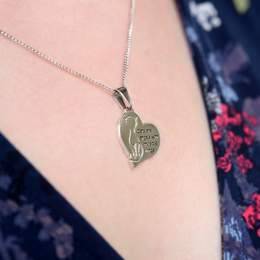 Cats are Angels with Invisible Wings Heart Pendant N...