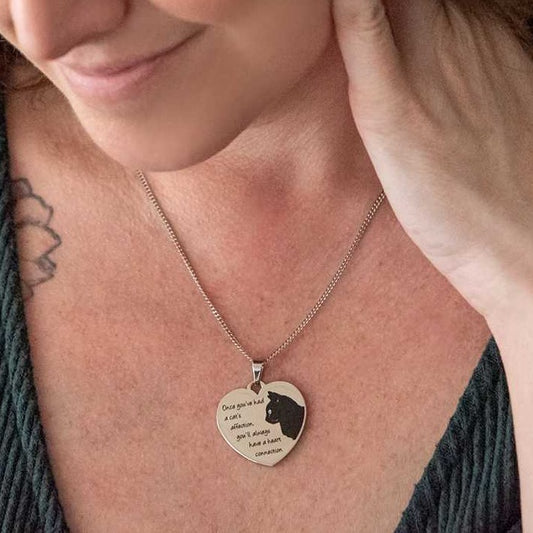 Cat Lover's Heart Connection Stainless Steel Pendant...