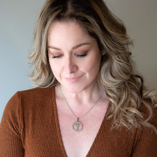 Celtic Trinity Knot Cross Pendant Necklace with Emer...
