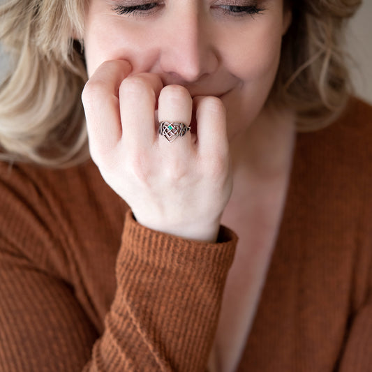 Celtic Infinity Heart Signet Ring with Emerald Stone...