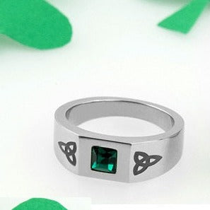 Celtic Trinity Knot Stainless Steel Ring with Emeral...