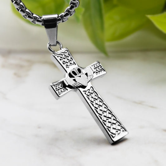 Celtic Claddagh Cross Religious Pendant Necklace Iri...