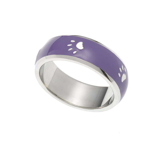 Enamel Paw Print Ring Red or Purple Stainless Steel