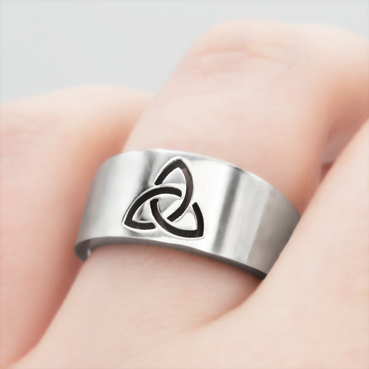 Celtic Trinity Knot Band Ring in Stainless Steel - I...