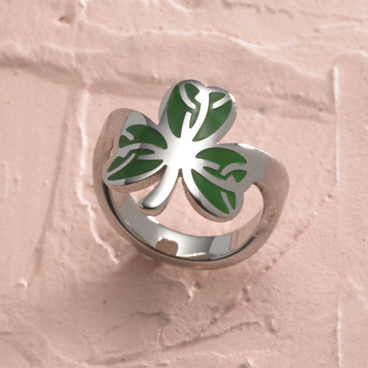 Celtic Shamrock Ring with Green Enamel and Trinity K...