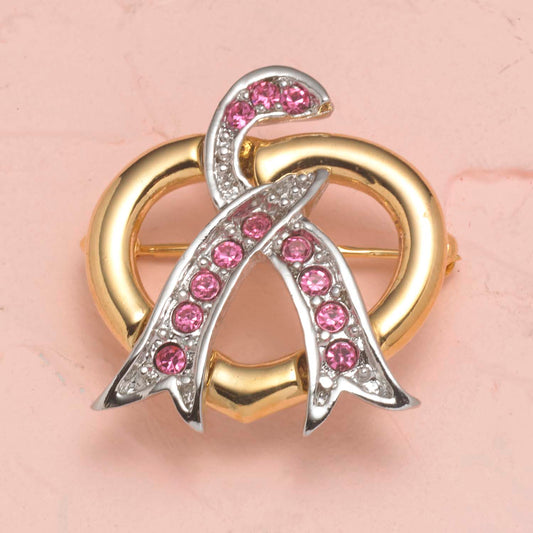 Gold Plated Pink Ribbon Heart Breast Cancer Awarenes...