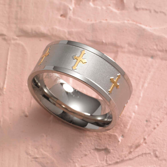Gold Plated Seven Cross Band Ring - Religious Faith ...