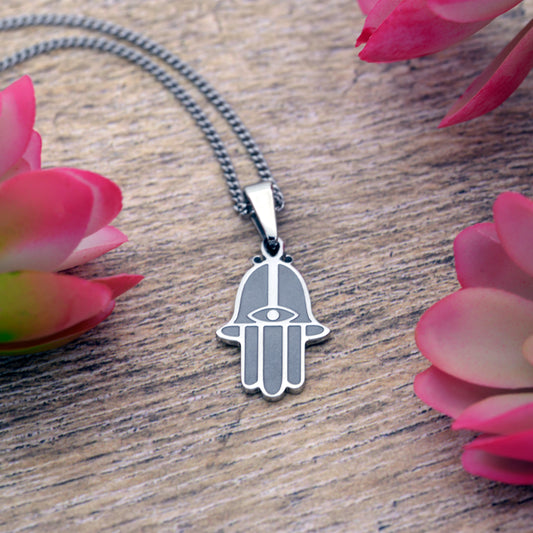 Hamsa Hand Pendant Necklace Stainless Steel Etched D...