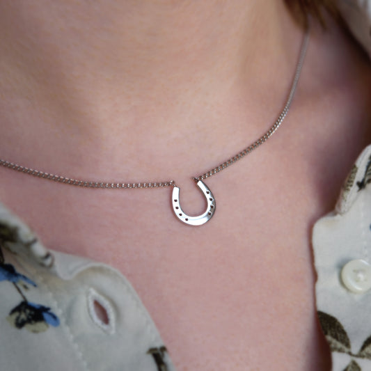 Good Luck Horseshoe Equestrian Pendant Necklace Stai...
