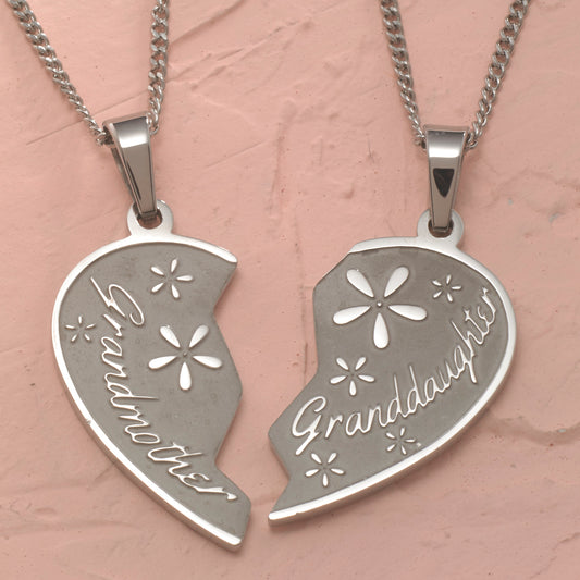Grandmother Granddaughter Stainless Steel Heart Pend...