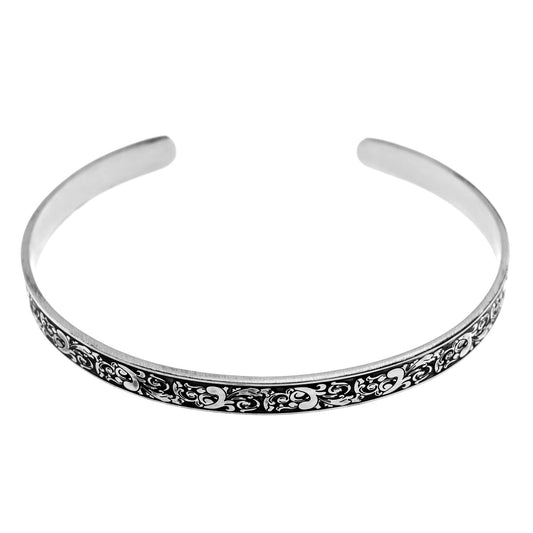 Floral Engraved Stainless Steel Cuff Bracelet for Ma...