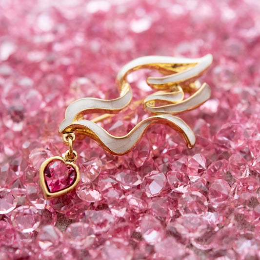 Gold and Pink Enamel Dove Pin with Heart Crystal Charm