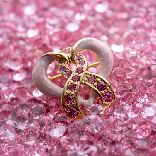 Gold Plated Enamel Heart Pin with Pink Crystal Aware...