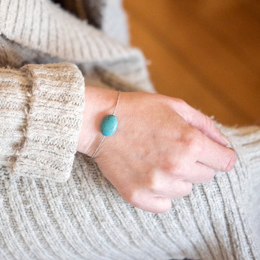 Genuine Turquoise Stone Friendship Bracelet in Stain...