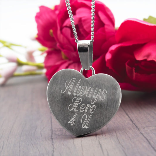 Gold Rose Heart Pendant Necklace - Engraved "Words C...