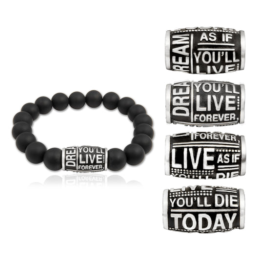 Genuine Black Onyx Inspirational "Dream Live" Stretc...