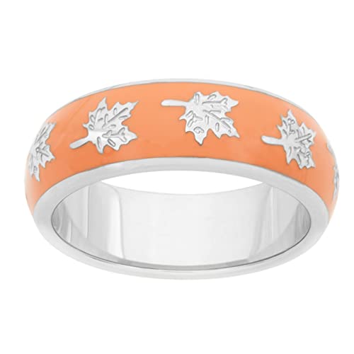 Fall is in The Air Stainless Steel Leaf Ring with Or...