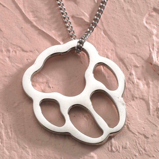 Large Steel Paw Print Pendant Necklace - Pet Owner J...