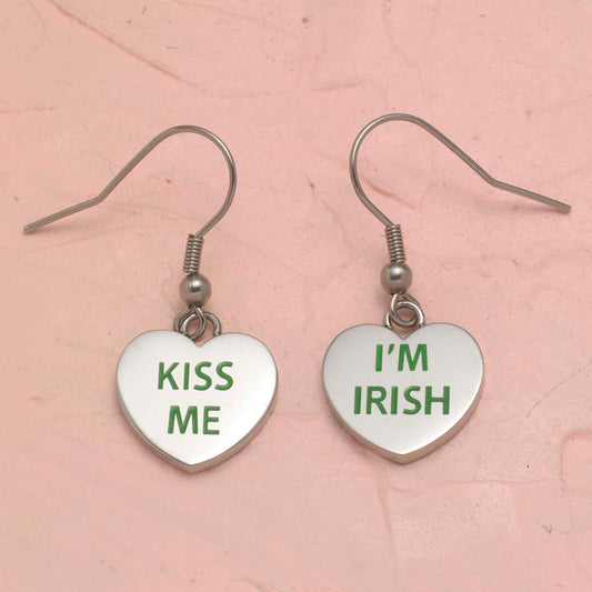 Kiss Me, I'm Irish Stainless Steel Heart Earrings - ...