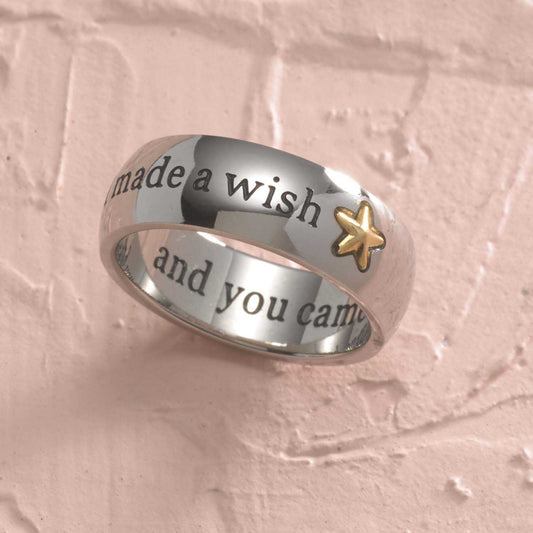 I Made a Wish Star Engraved Gold-Plated Ring - Roman...