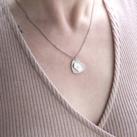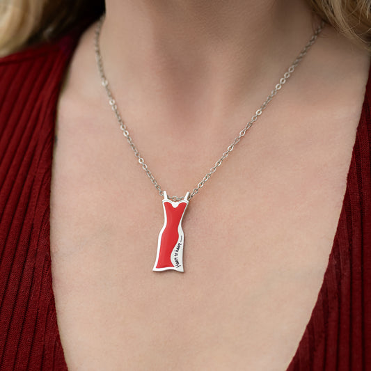 Heart to Heart Red Dress Pendant Necklace in Stainle...