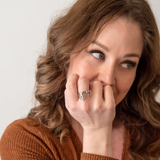Heart Shaped Scroll Cutout Ring Unique Statement Rin...