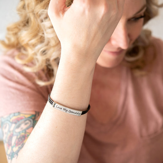 I Love My Granddog Engraved Leather Bracelet - Senti...