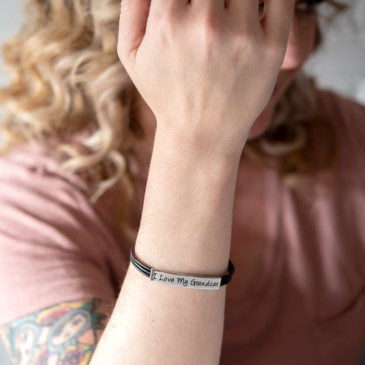 I Love My Grandcat Engraved Leather & Stainless Stee...