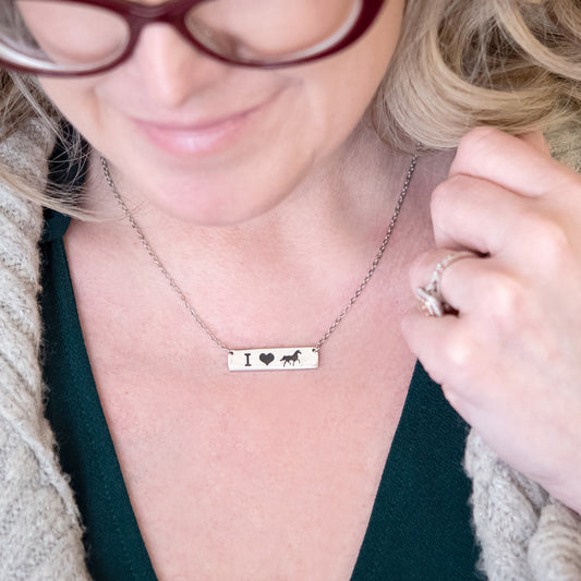 I Heart Horses Stainless Steel Bar Pendant Necklace ...