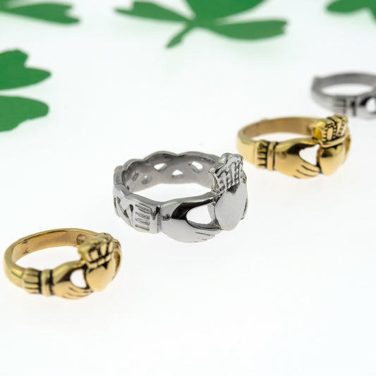Large Stainless Steel Celtic Claddagh Ring - Irish S...