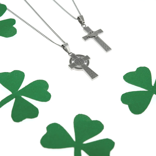 Irish Knot and Nimbus Design Celtic Cross Pendant Ne...