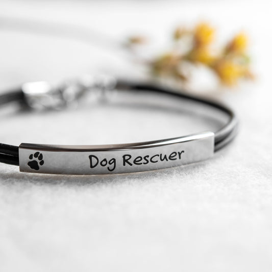 Leatherette Cord "Dog Rescuer" Bracelet with Paw Pri...