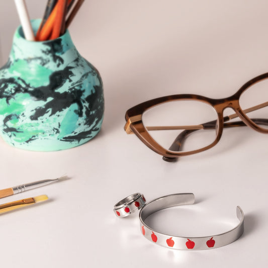 I Care I Teach Apple Cuff Bracelet - Stainless Steel...