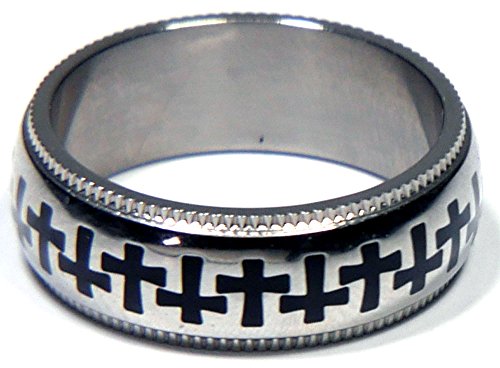 Men's Stainless Steel and Black-Plated Stone Cross Ring