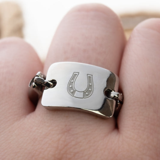 Lucky Horseshoe Ring Stainless Steel Equestrian Jewe...