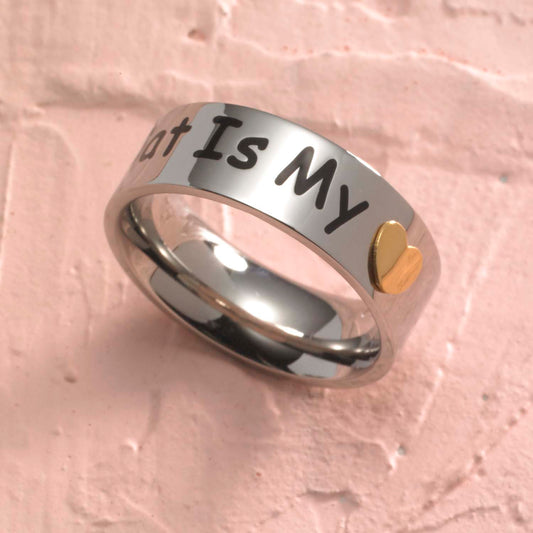 My Whole Heart Stainless Steel Engraved Ring - Roman...
