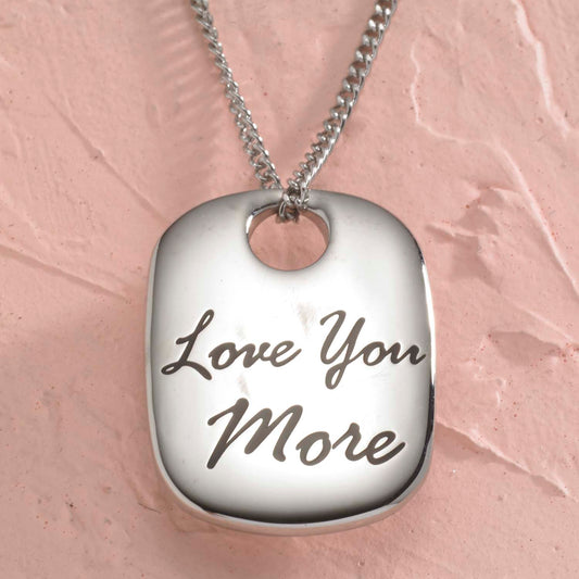 Love You More Stainless Steel Engraved Pendant Neckl...