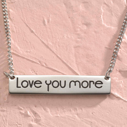 Love You More Engraved Bar Pendant Necklace in Stain...