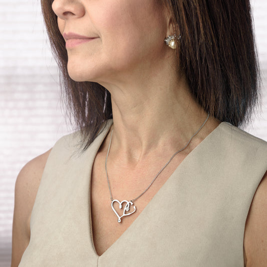 Mom and Daughter Stainless Steel Heart Pendant Neckl...