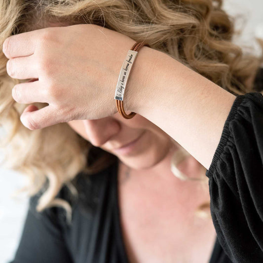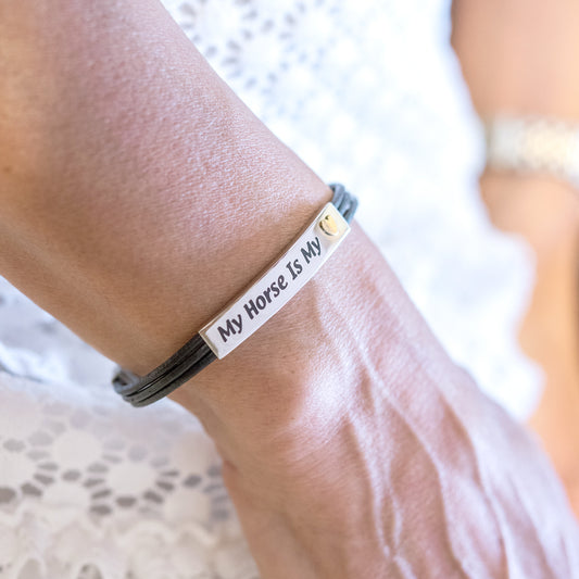 My Horse Is My Heart Engraved Leather Bracelet for H...