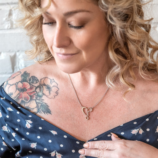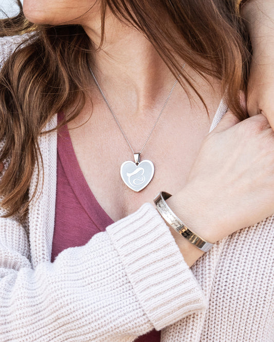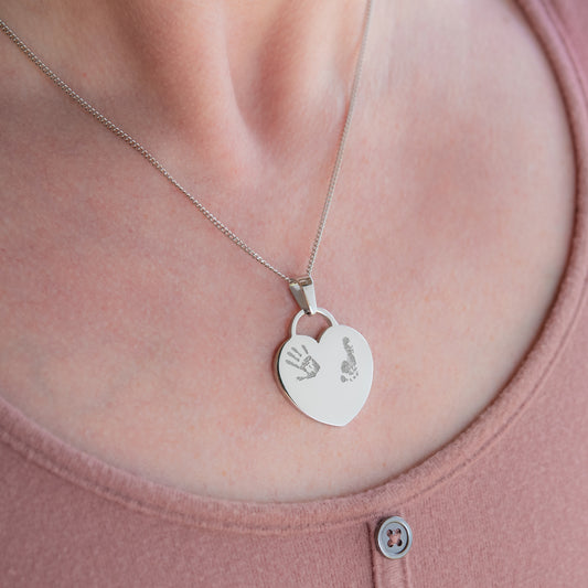 Mommy Baby Hand and Foot Print Heart Pendant Necklace