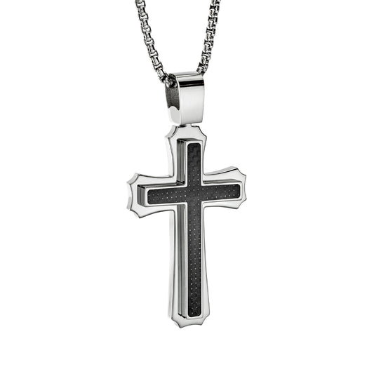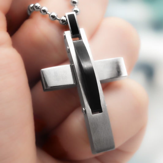Men's Cross Pendant Necklace Stainless Steel and Bla...